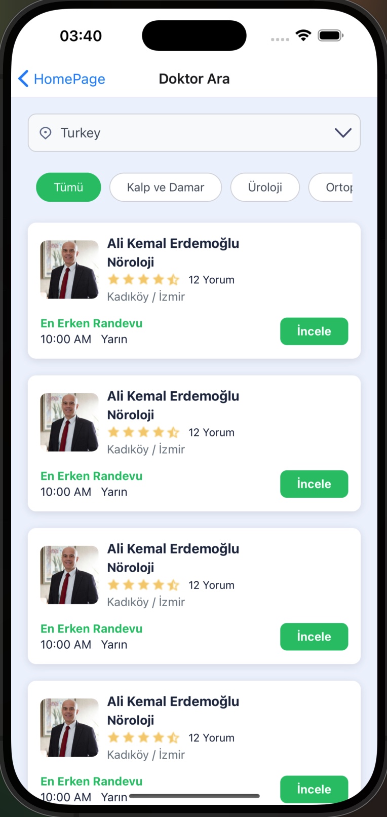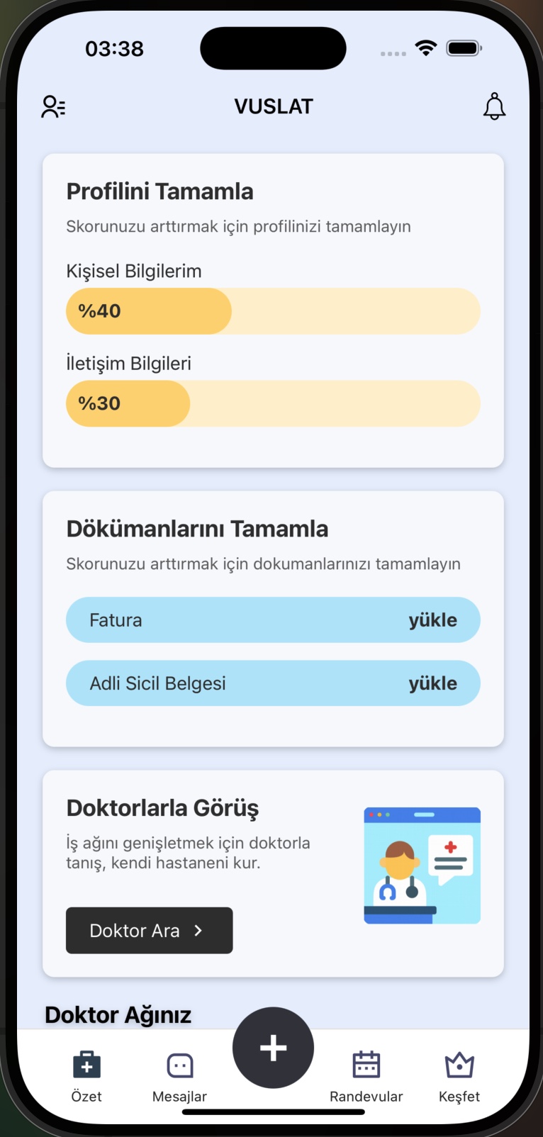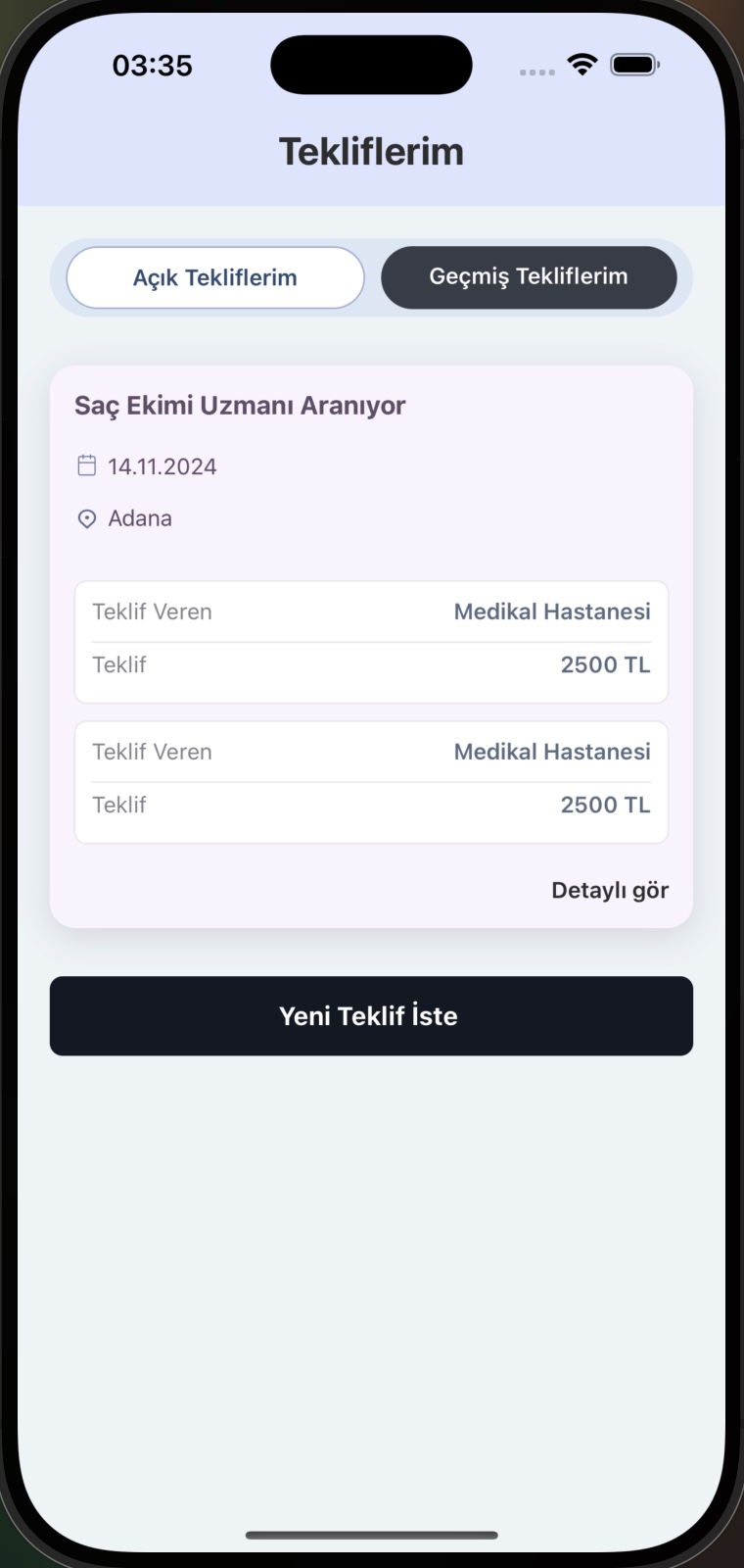 Hastalar ile doktorlar arasında köprü kuran sağlık elçileri için geliştirilmiş React Native uygulaması: teklif yönetimi, komisyon takibi ve randevu sistemi.